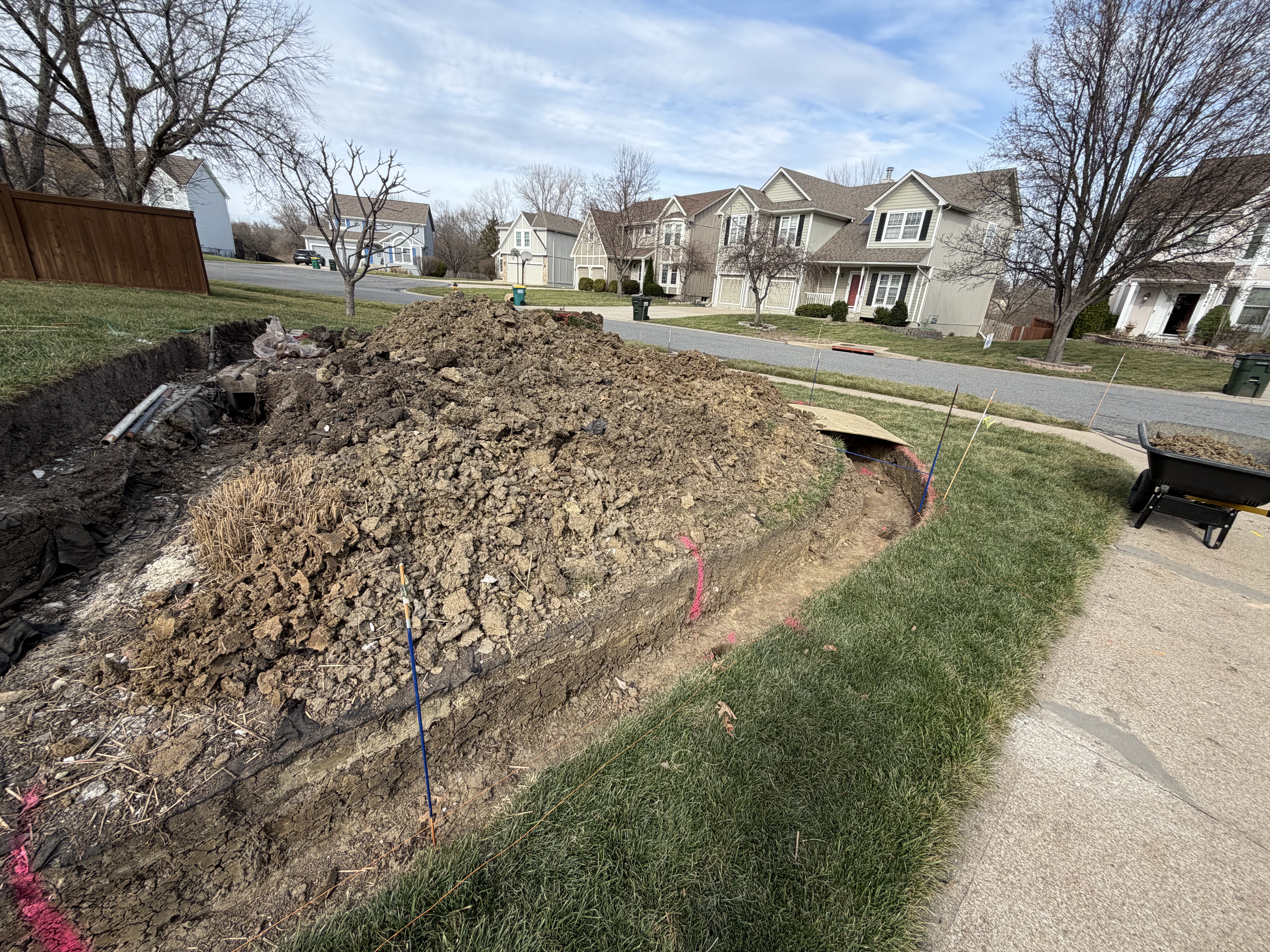- Details: This is a mixture out of mostly fill dirt/some clay and some soil. I’m OK with a mini skid steer if you bring plywood to drive on across the grass and trench. I don’t want the grass to get damaged