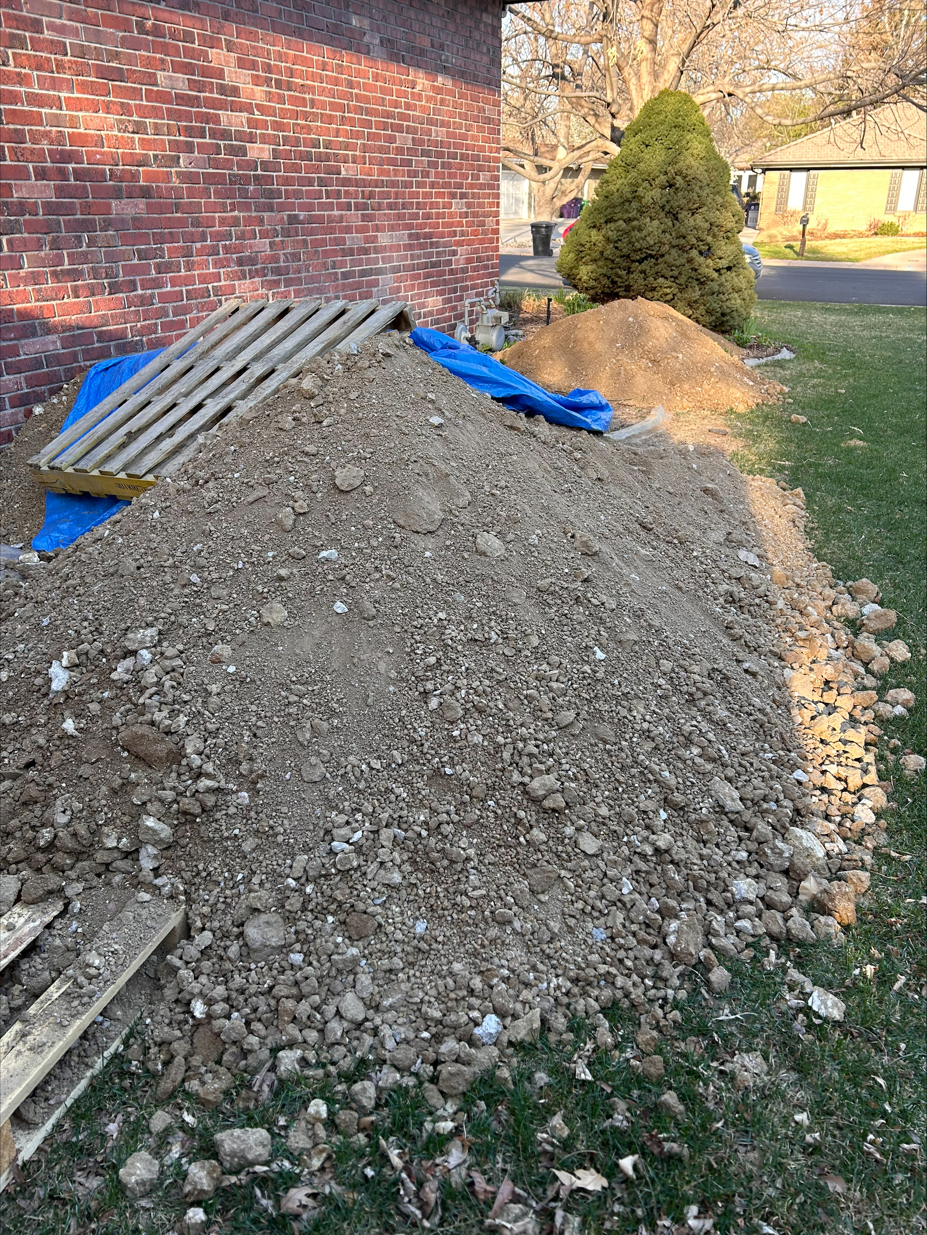 - Details: Approximately 8 cubic yards of dirt from basement excavation project. Some small rocks mixed in. Piled on the side of my house. Can access from the road but need to protect landscaping if any heavy equipment is used. Willing to help load.