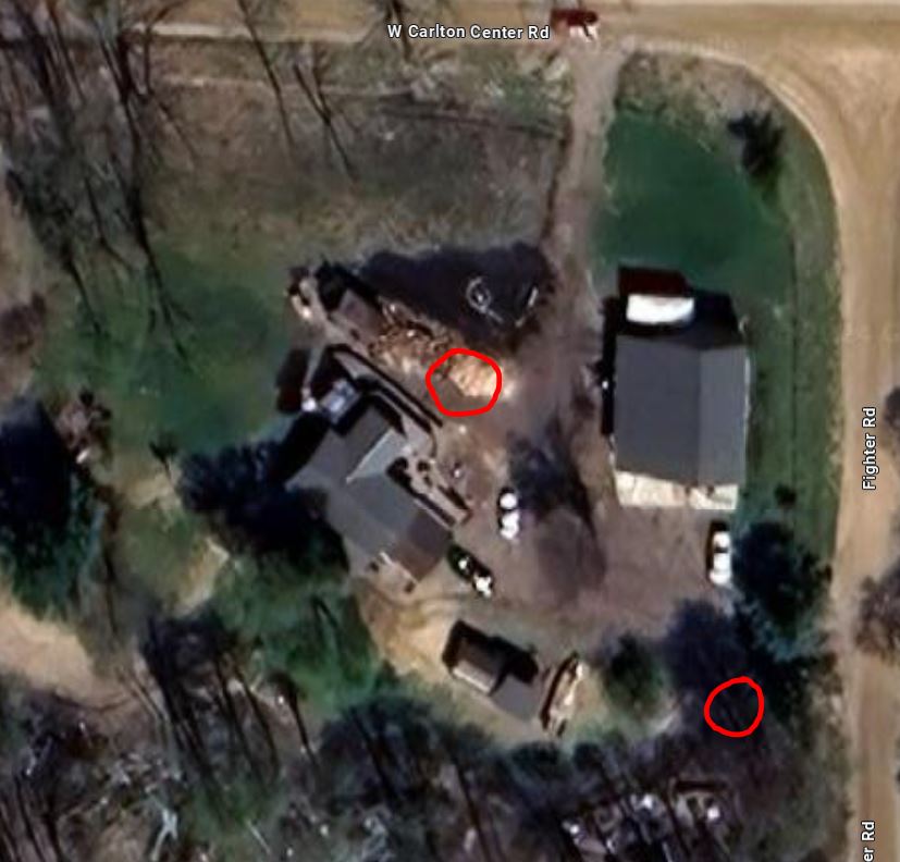 • Details:  Dirt can be dumped where the red circle closest to the road is. I can move it with my tractor