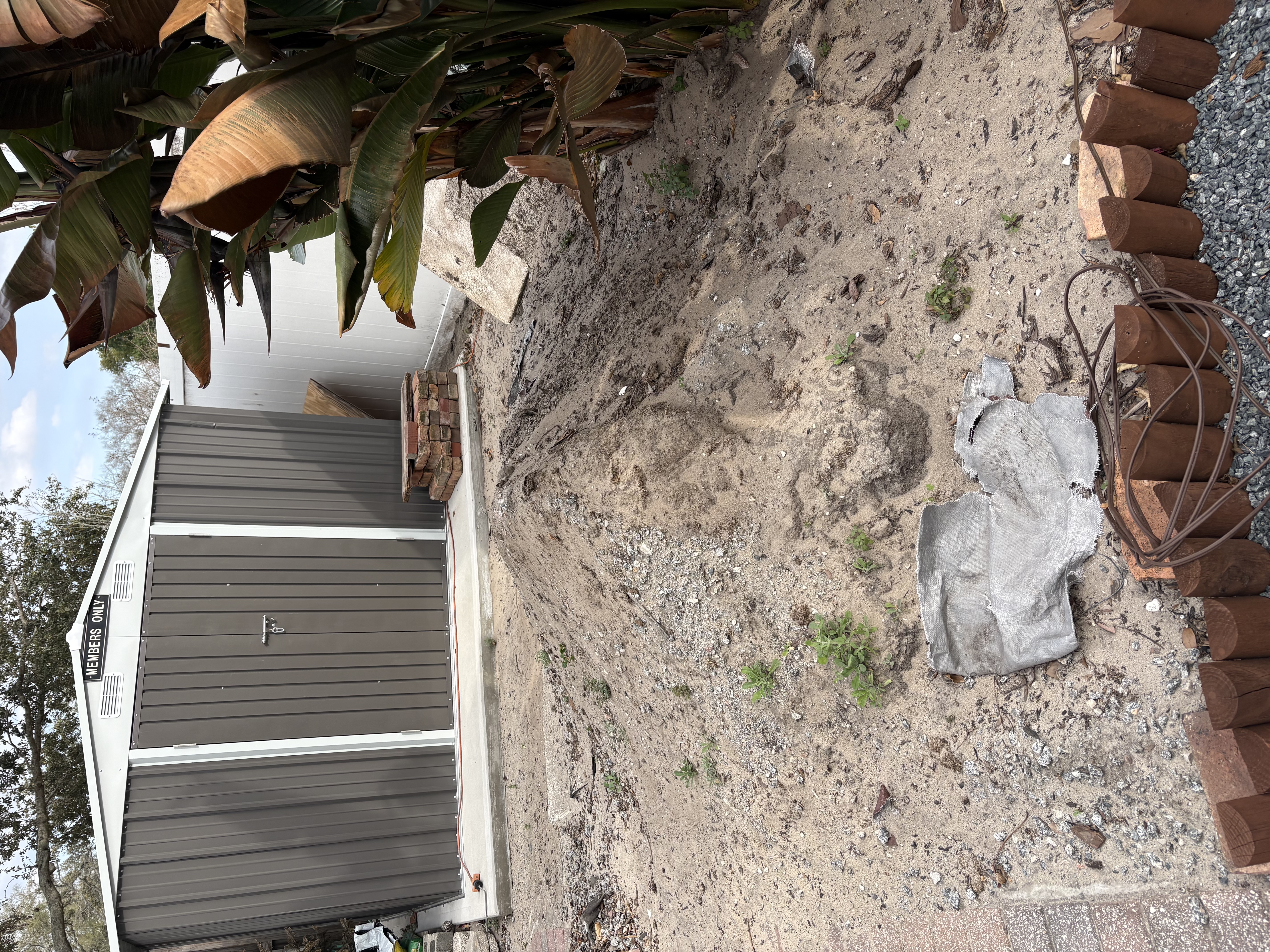 - Details: Just inside the gate to our backyard. Mostly sandy dirt with some gravel from pouring a slab for a shed. Some concrete fines at the bottom of the pile from a paver job.