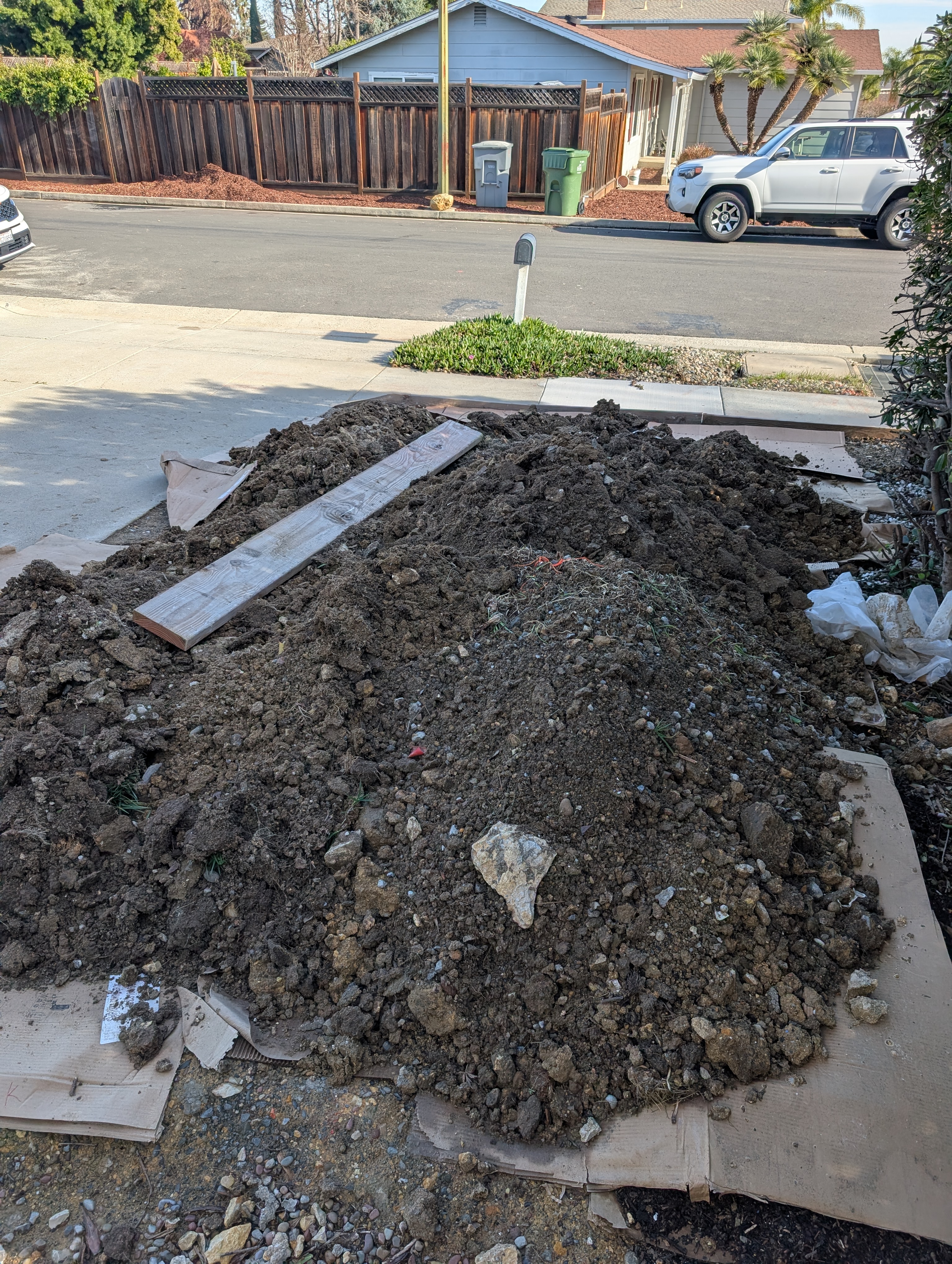 • Details:  About 4 cu yds of dirt from our front yard landscape project. Next to the drive way - accessible by truck or machinery