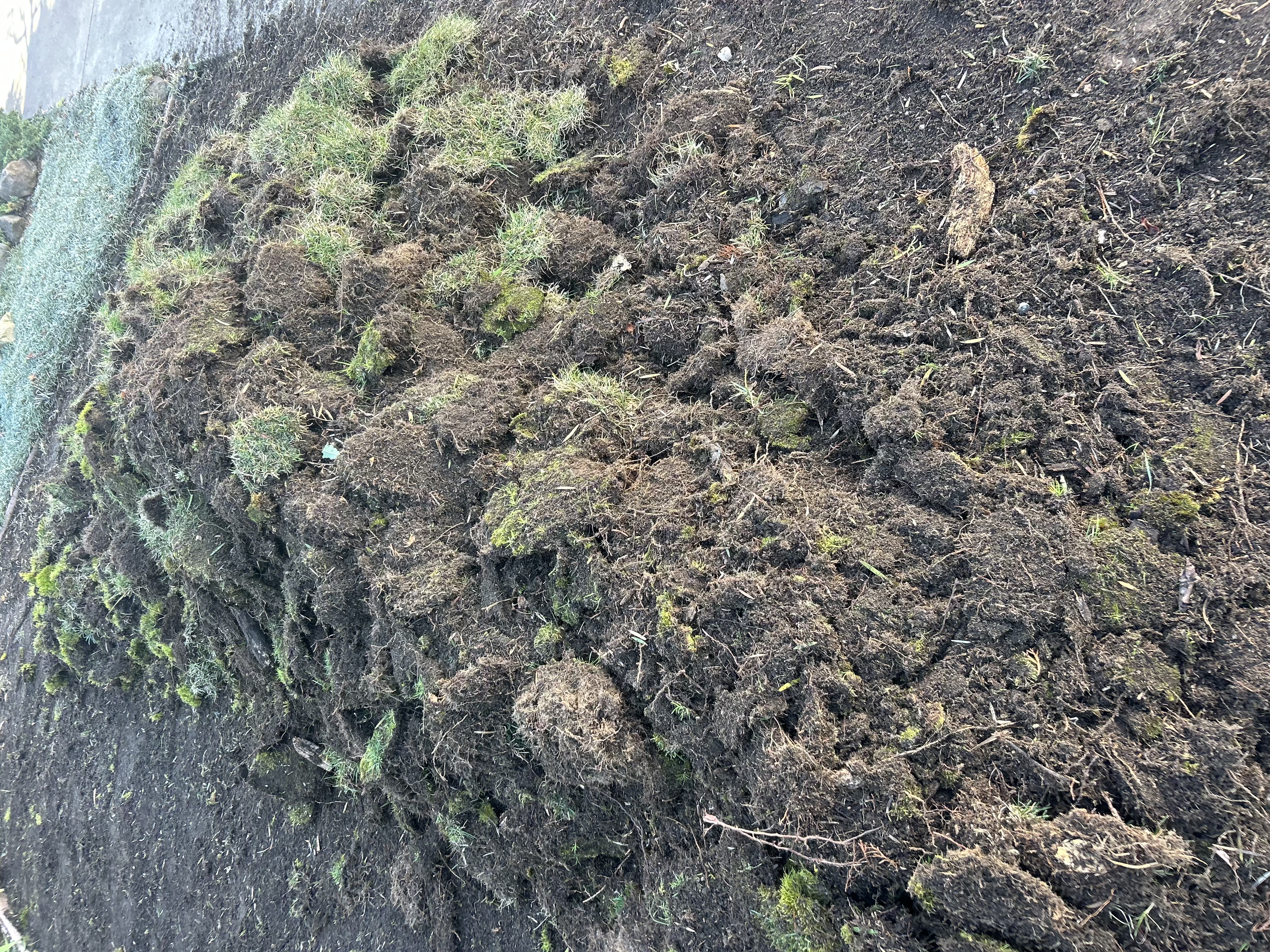 - Details: I’m re-doing my front yard landscaping and need to have the loosened topsoil hauled away. One pile has moss and grass seeds (see pic) and the other has much less organics (not shown, only one pic allowed here).